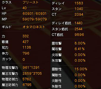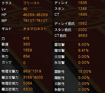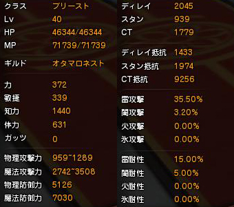 ネストとかソロアビスとかで火力あった方が良いってとき用の装備のステ。